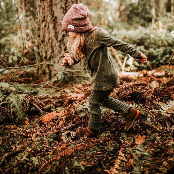 In addition to wearing an all-covering next-to-skin merino wool base layer underneath a shell layer (like wind/rain or snow pants), they add a layer in between the base and the shell which is made from a thicker kind of ribbed wool knit. This layer is cozy and soft, but not bulky so it is easy to play with and move like normal.